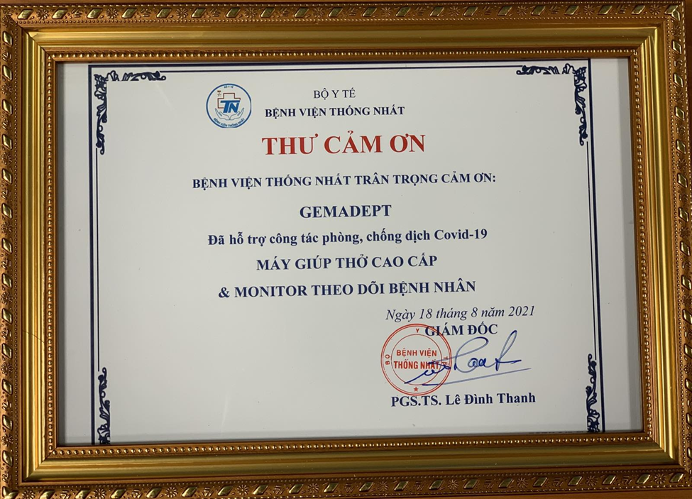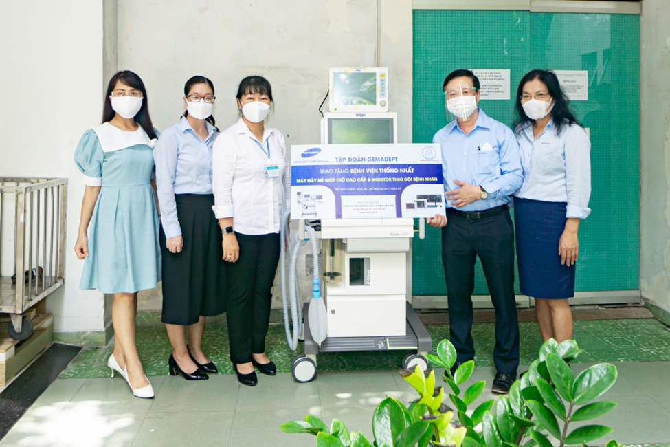 Overcoming challenges when the whole country is fighting against the Covid-19 pandemic, Gemadept Corporation (Gemadept) took on a series of concrete and practical actions to join hands with everyone to push back the pandemic. At the same time, the Company provides physical and spiritual motivation for the frontline hospitals in the fight to save patients from Covid-19. Continuing the donation to the Vaccine Fund, purchasing medical equipment for hospitals, awarding scholarships to children of doctors and nurses and more, on the morning of August 18, 2021, representatives of Gemadept donated the advanced Anesthesia machine and patient monitors to Thong Nhat Hospital, Ho Chi Minh City.
