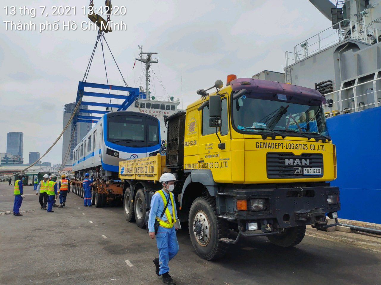Nhằm đảm bảo nhiệm vụ tiếp tục triển khai các dự án trọng điểm quốc gia trong đó có dự án tuyến Metro số 1 Bến Thành-Suối Tiên ngay giữa tâm dịch Covid-19, CT CP Gemadept (Gemadept) đã sát cánh cùng chủ đầu tư và nhà thầu dự án xuất sắc vận chuyển thành công hai đoàn tàu số 6, 7 về đến depot Long Bình (TP Thủ Đức) an toàn.