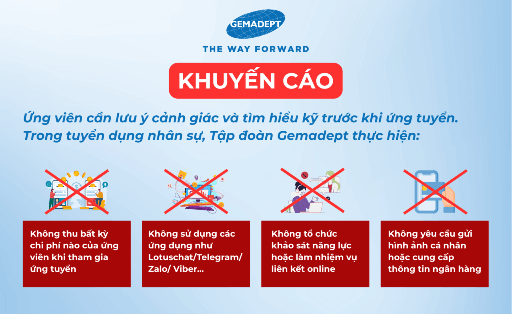 - Không chuyển tiền cho bất kỳ ai dưới danh nghĩa tuyển dụng của Gemadept.